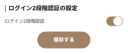 【ログイン2段階認証の設定】をオンにして【保存する】を押す事で設定が完了します。